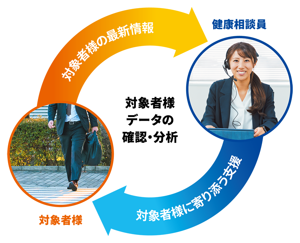 初回面談から継続支援まで、プログラム参加者様の「行動変容」をしっかりとサポートしていきます。