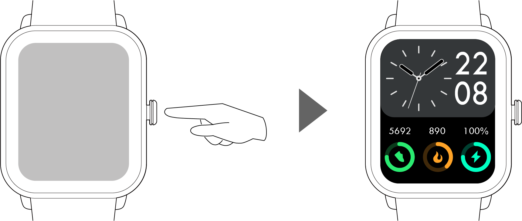 画面の消灯中に機能ボタンを短押し:ホーム画面を表示します。