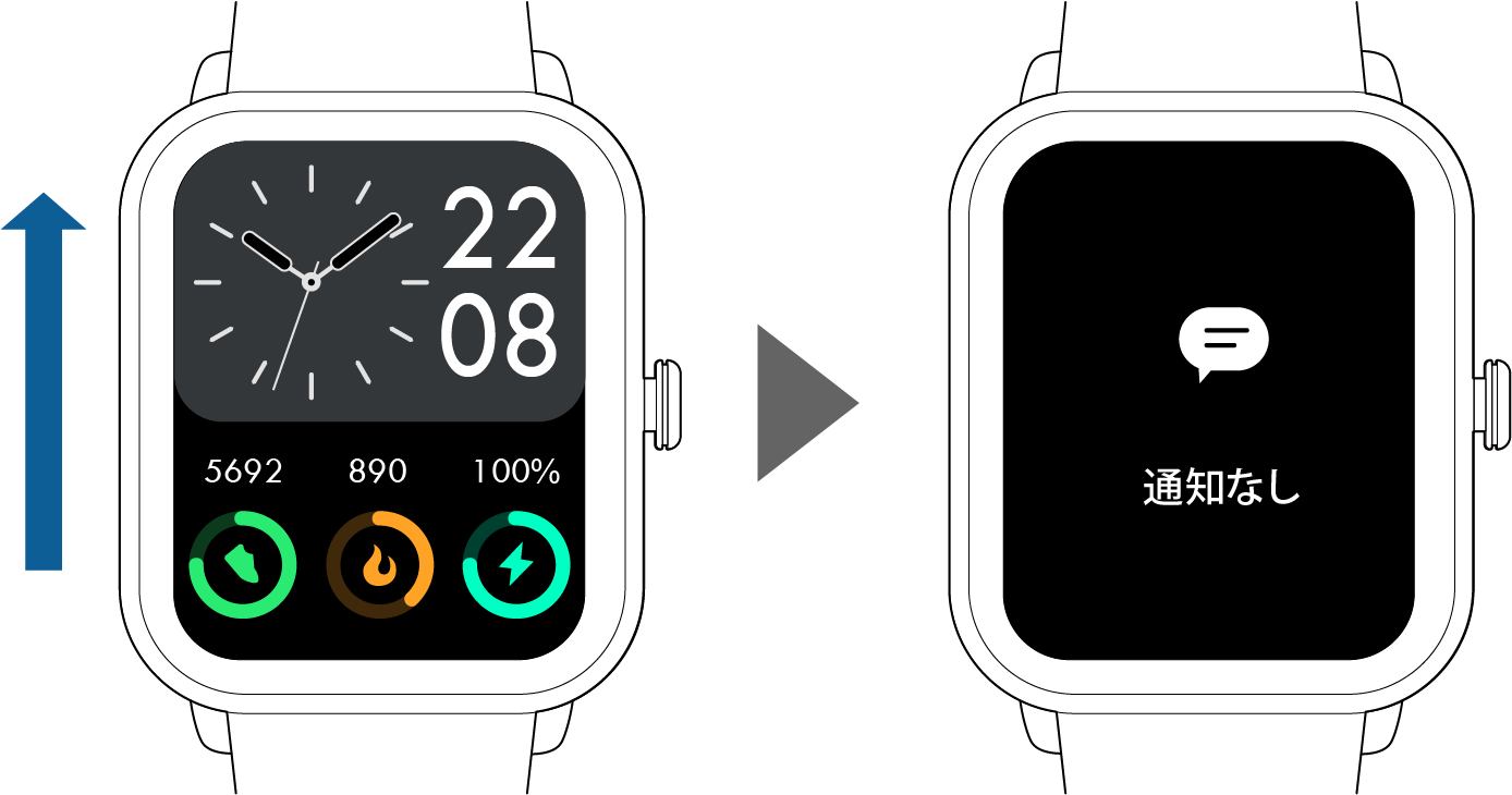ホーム画面で上方向にスワイプ:通知を表示します。