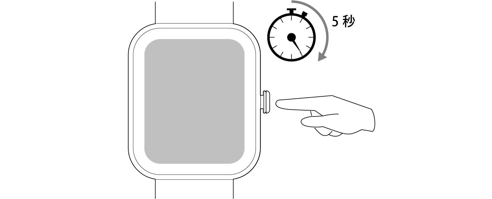 活動量計の電源をオンにするには、本体が振動するまで機能ボタンを5秒以上長押しします。