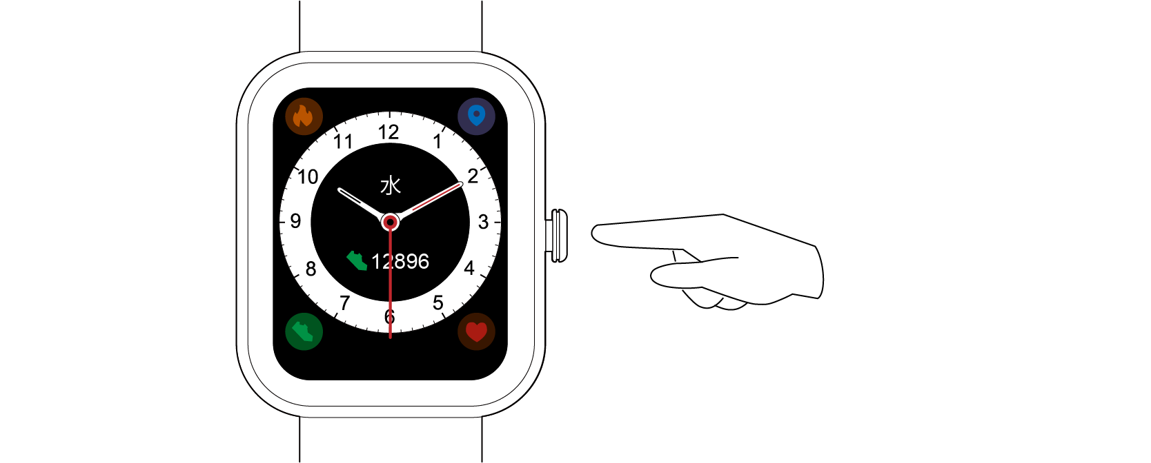ホーム画面が表示されていないときは、機能ボタンを短押ししてホーム画面を表示します。