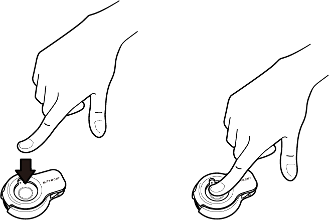 活動量計の電源がオフとなっているとき、活動量計のボタンを5秒長押しし、離します。